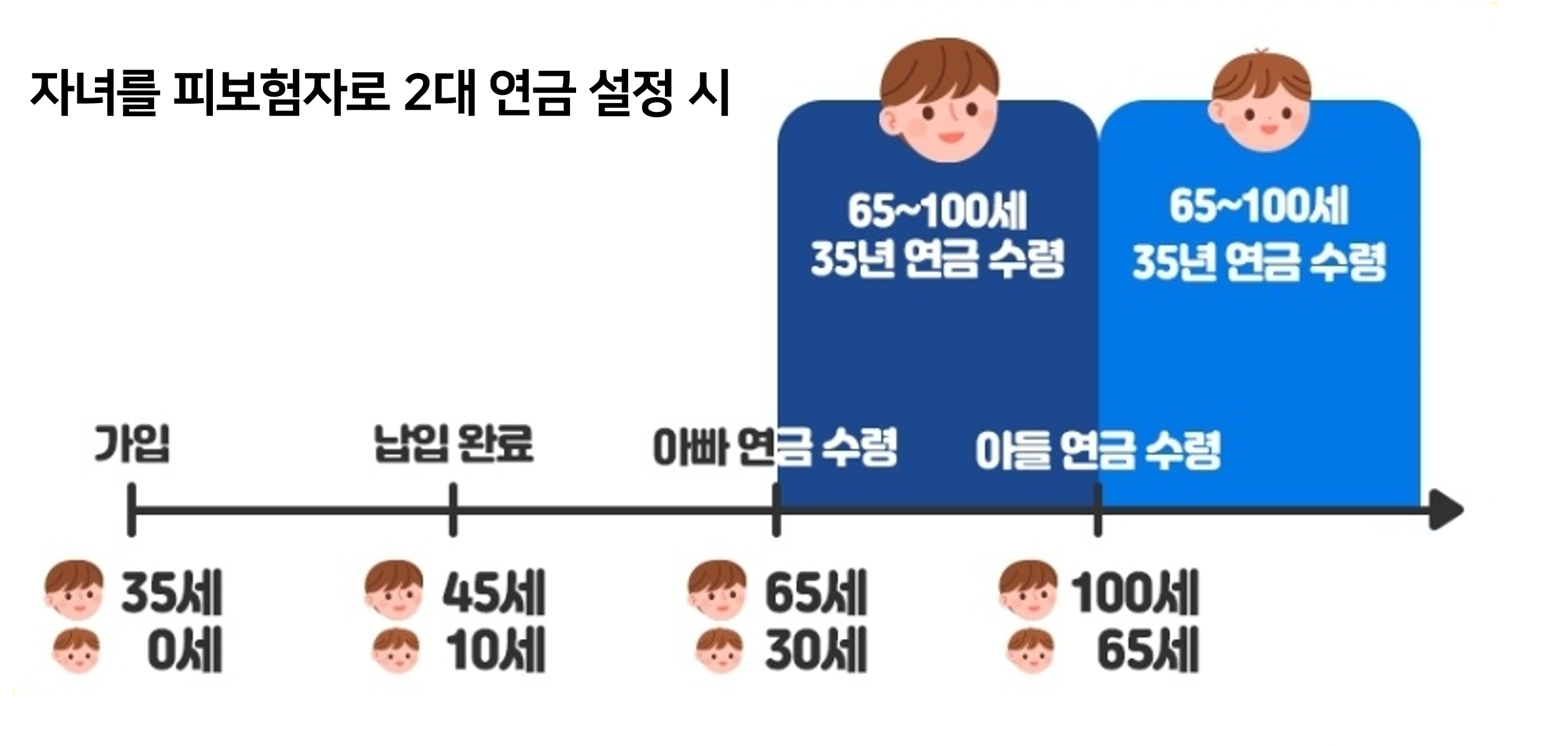 2대연금플랜은 본인 사망 후에도 자녀가 연금을 계속 받을 수 있습니다.